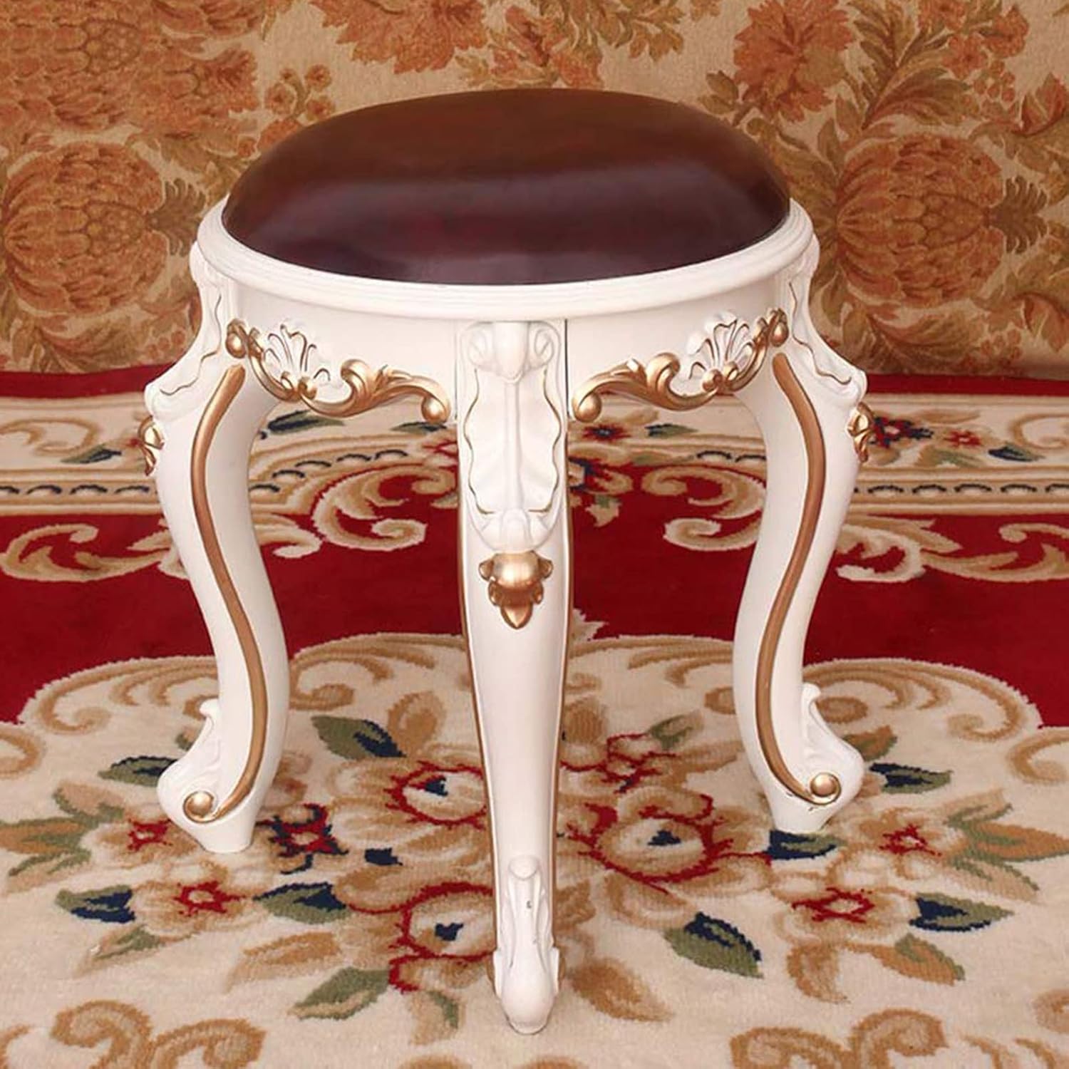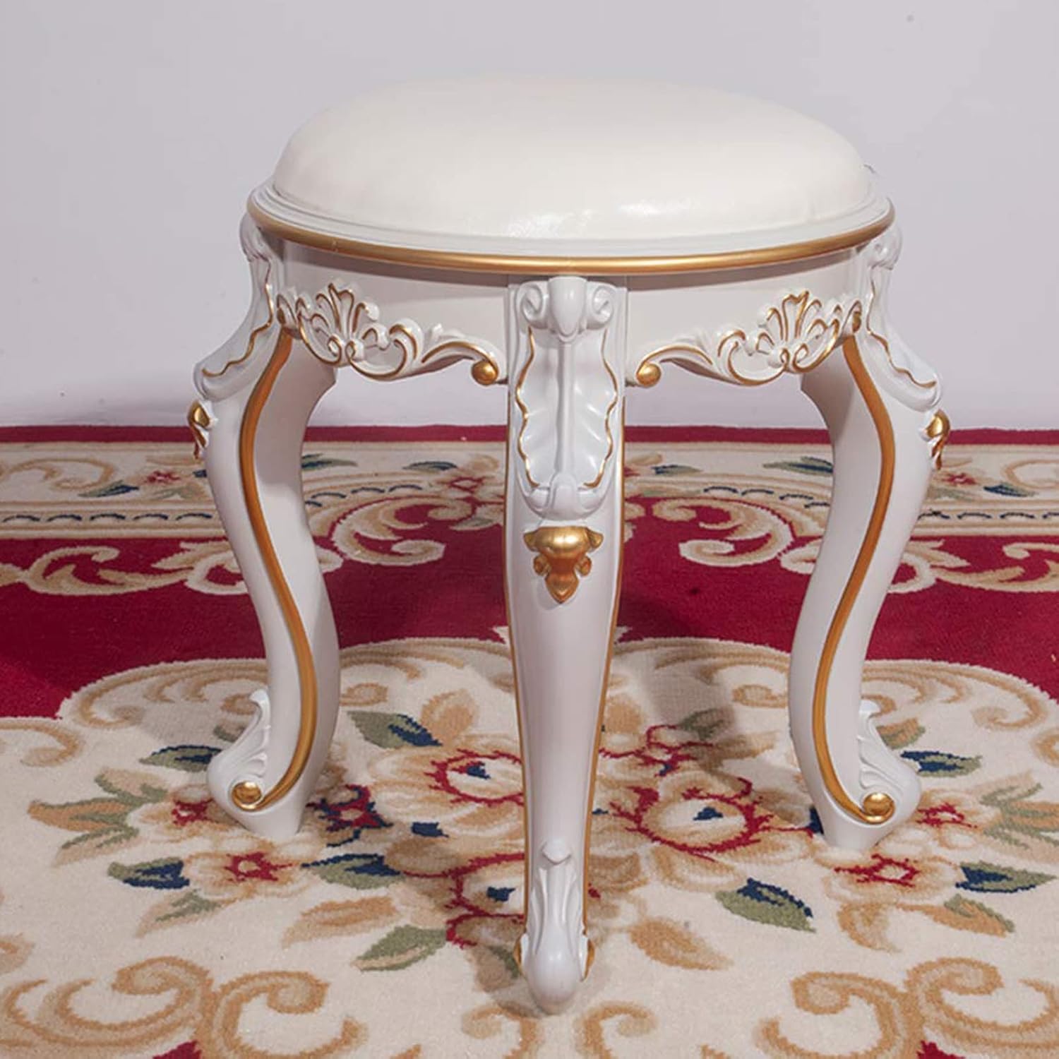 ● ABS plastic steel stoolAnti-fall, waterproof, good bearing capacity, not easy to deform, and versatile at home.● Thickened rebound cushionThe thick, high-density sponge is elastic and not easily deformed.● Multifunctional stoolYou can put it on bathroom, bedroom, living room seat makeup stool, shoe stool, piano stool.● Swan stool legsThe exquisite swan-leg design shows elegance without losing luxury and solemnity. The slightly curved table legs make it the perfect combination for any makeup vanity.● Hand-painted gold and silverPurely hand-painted gold and silver, making the home elements richer, simple and luxurious.● Rounded cornersThe smooth edges and corners make the whole more noble and beautiful. Specifications:[Product name] : Dressing stool[Product Specifications] : 35CM*35CM*43CM[Style]: Flower full stroke gold/flower stroke goldFlower full stroke silver/flower stroke silver[Product technology]: paint-free one-piece molding, gold-painting process[Product material] : ABS plastic steel[Product color]: Multi-color optional[Load-bearing capacity]: 150kgPackage Included:1 x Vanity Stool